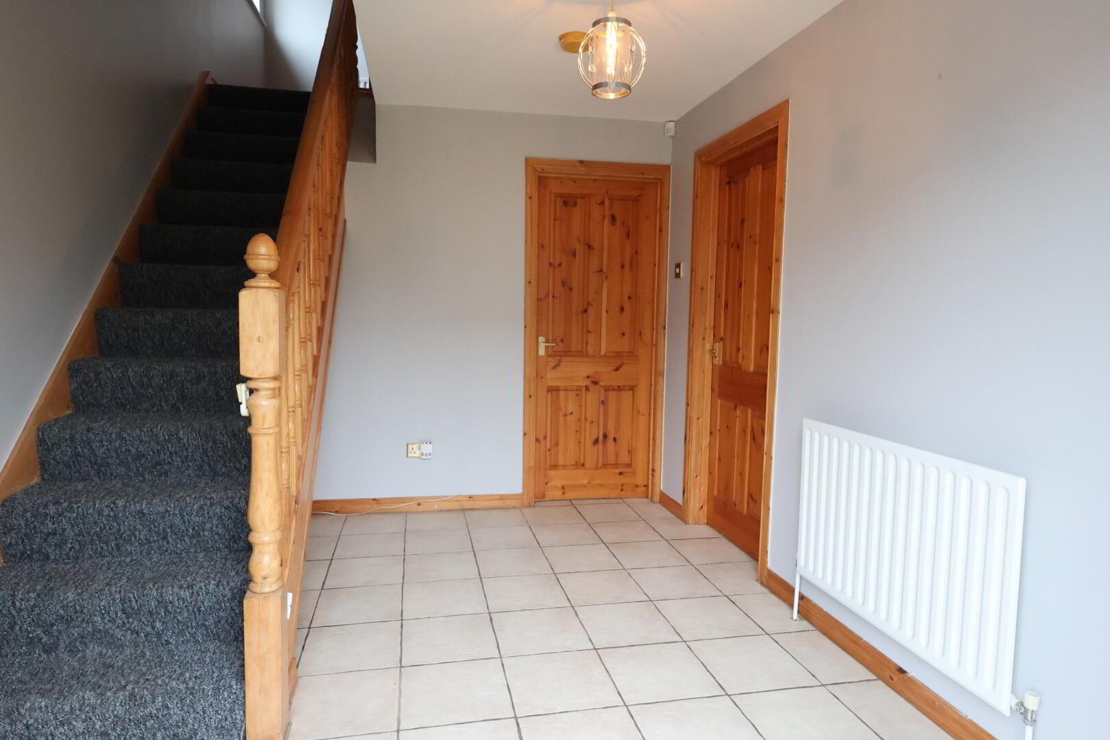 Landing: Carpet, shelved hot press with internal immersion heater, 1 x double power point, 1 x single radiator, attic access.
