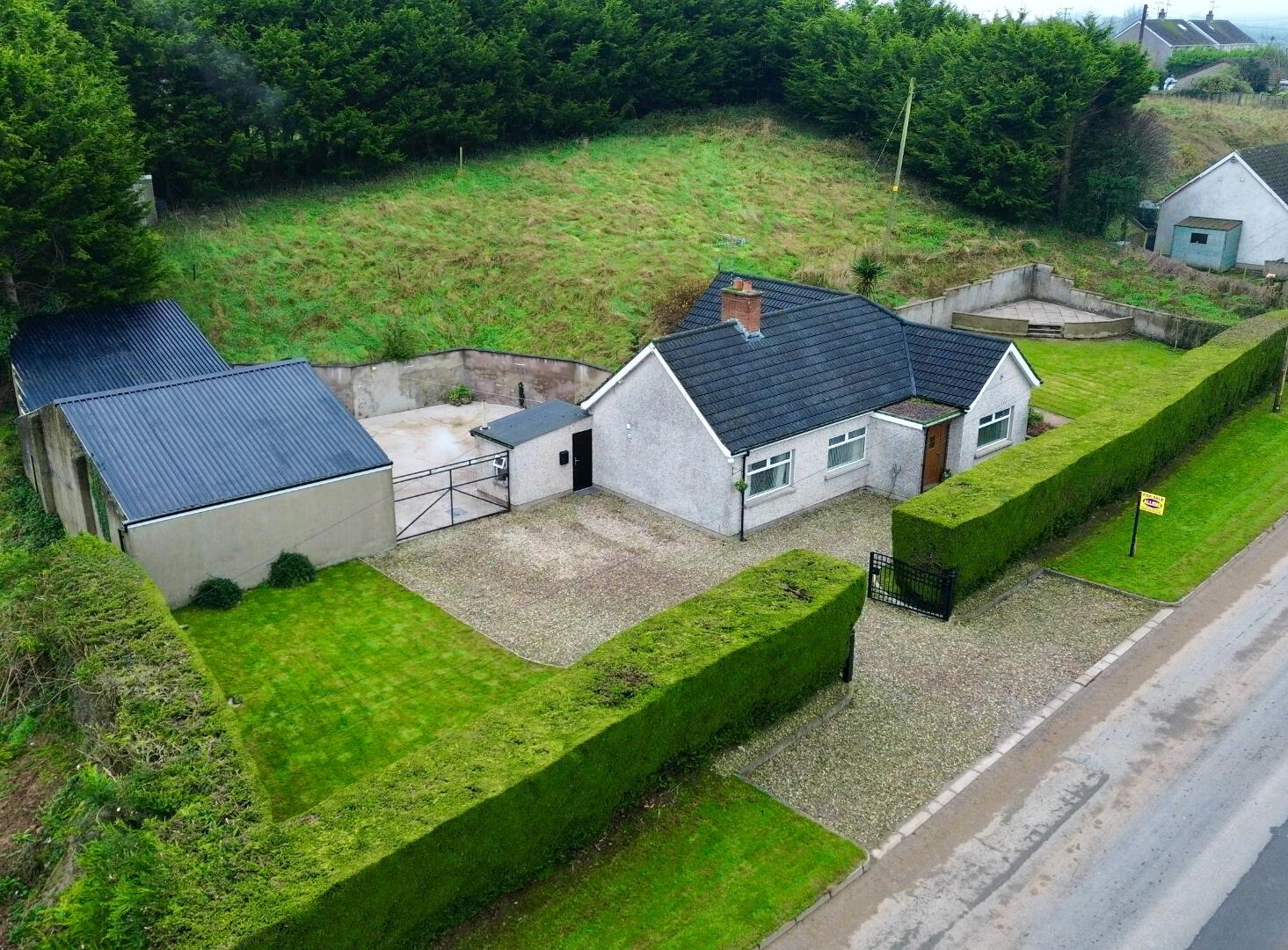 - Gravel Driveway With Double Wrought Iron Gates