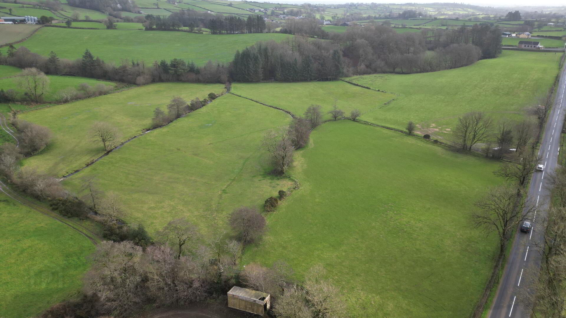 14.66 acres of agricultural land, divided into five fields, fenced for sheep, watered from natural source and benefiting from extensive road frontage providing easy access.