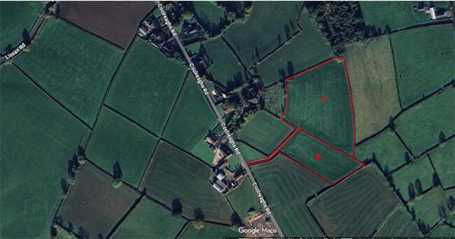 Access provided by a short laneway from Coolreaghs Road, offering straightforward entry for agricultural vehicles and equipment.