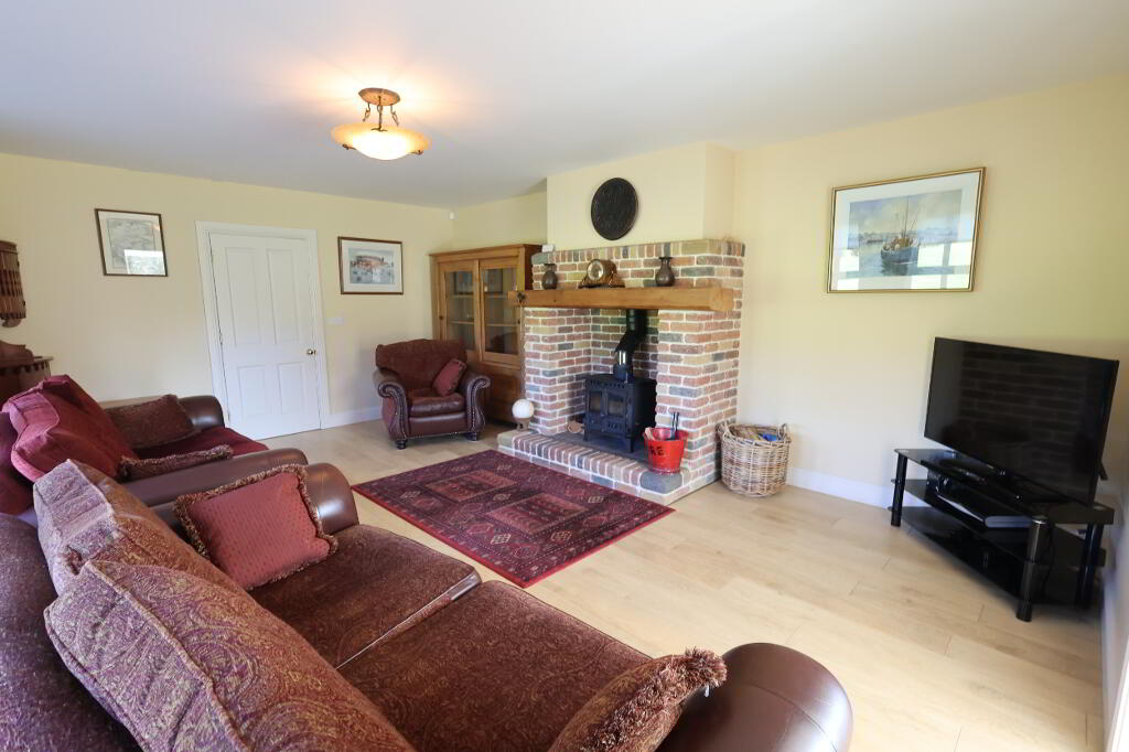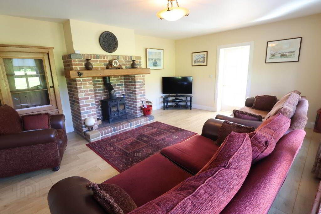 Sitting Room: 19’00” x 14’03” (5.81m x 4.36m) Feature brick fireplace with Hunter stove & solid Oak mantle, 5 x double power points, 2 x 5 amp lamp sockets, 3 x double radiators, tv point, telephone point, heavy duty laminate floor.