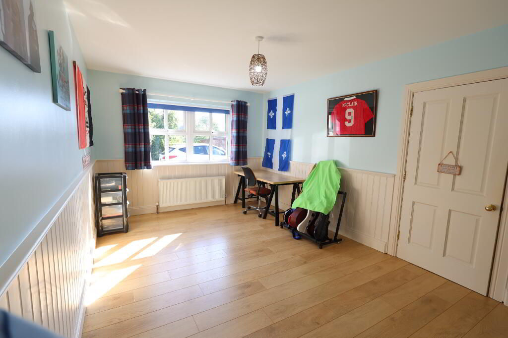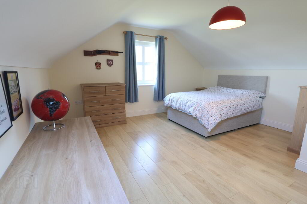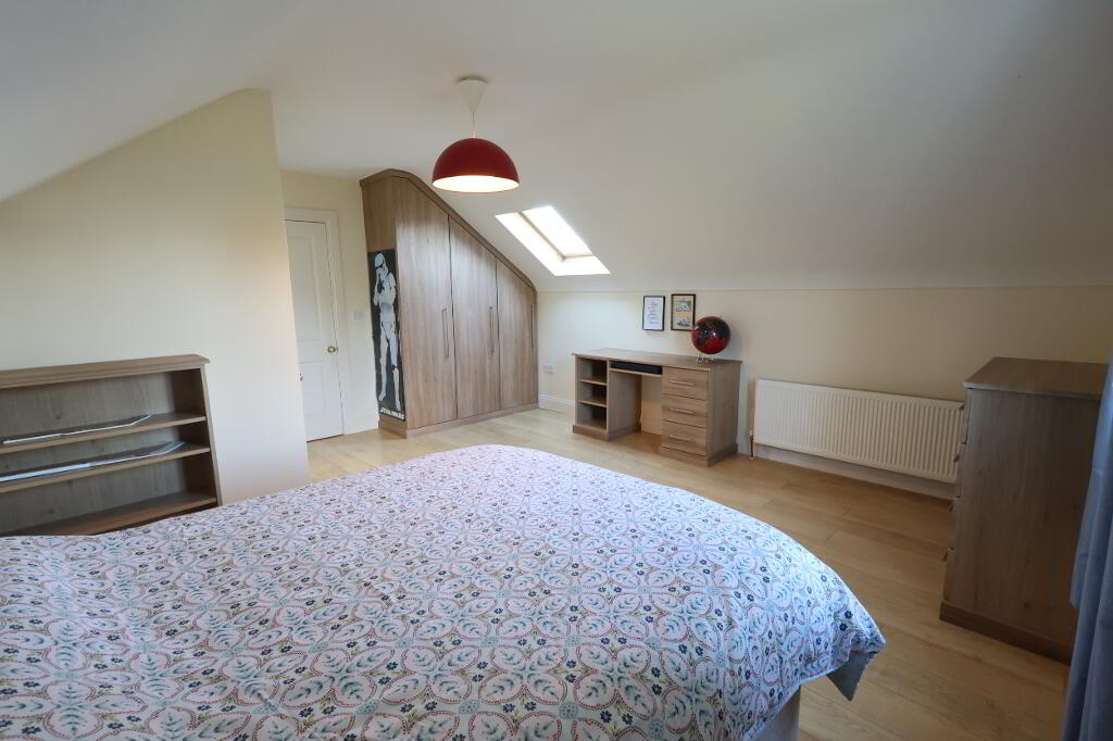 Bedroom 4: 16’09” x 14’06” (5.12m x 4.42m) Built in wardrobe, 4 x double power points, 1 x double radiator, tv point, velux window, heavy duty laminate floor.