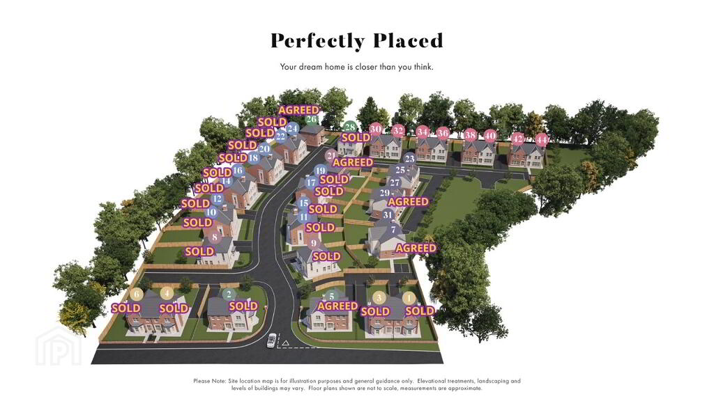 Please Note: Site location map is for illustration purposes and general guidance only. Elevational treatments, landscaping and levels of buildings may vary. Floor plans shown are not to scale, measurements are approximate.
