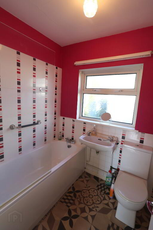 Bathroom: 6’01” x 6’01” (1.87m x 1.87m) Wc, whb, bath, Triton electric shower over bath, 1 x single radiator, part tiled walls, vinyl floor.