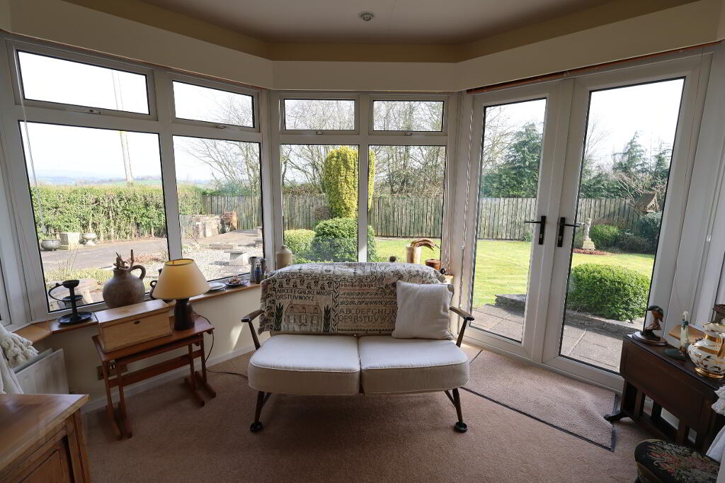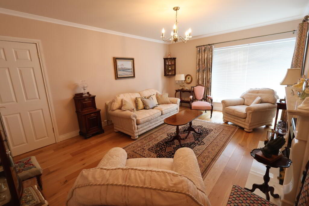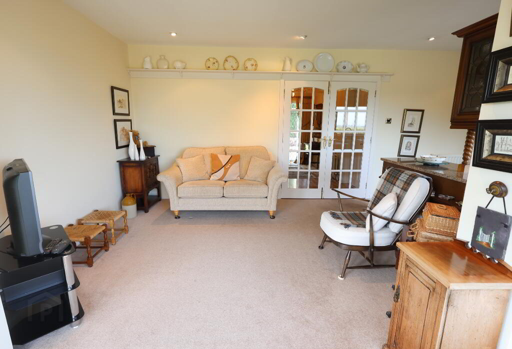 Living Area/ Sun Lounge: 16’09” x 11’07” (5.10m x 3.55m) 3 x double power points, 2 x double radiators, tv point, double glass panel doors leading to hall, double pvc patio doors leading to rear garden.